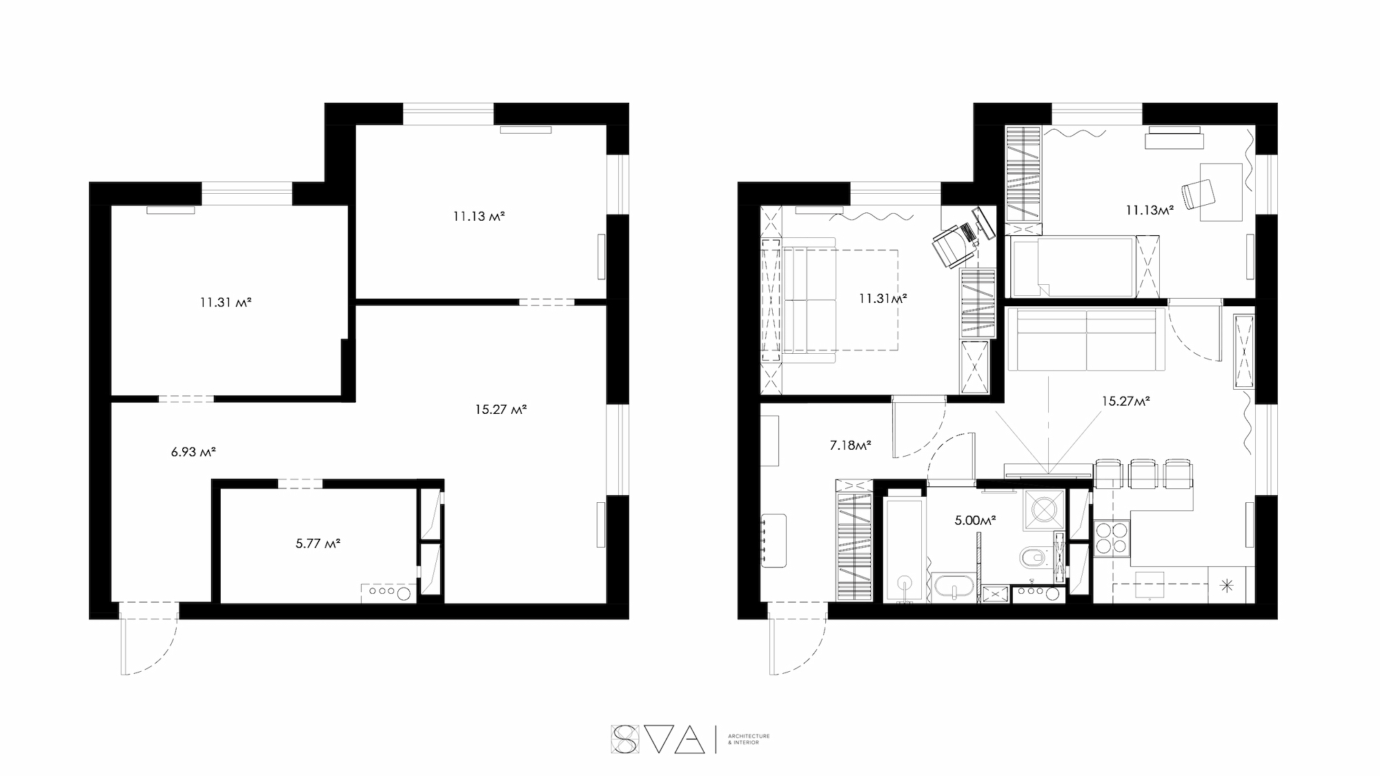 Квартира, для которой команда SVAI Studio создала и реализовала дизайн-проект, находится в современном жилом комплексе «Новая Боровая». Наши клиенты – молодая семейная пара с маленьким ребенком. Большую часть времени все члены семьи находятся дома. По этой причине в такой, казалось бы, небольшой по площади квартире, мы отдали предпочтение изолированным комнатам.